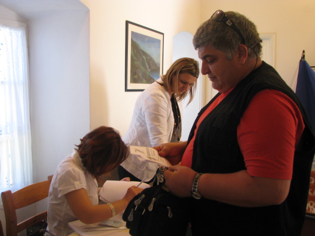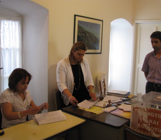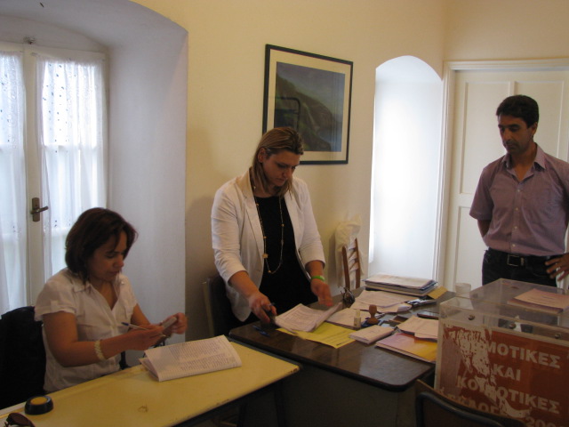 Η δικαστικός αντιπρόσωπος δικηγόρος των Αθηνών κ. Εμμανουέλλα Ηλιακοπούλου με την γραμματέα της Ξυδιά Περιστέρα από το Ληξούρι άνοιξαν την κάλπη στις 0700 μαζύ με τα μέλη της εφορευτικής επιτροπής, Διονυσάτου Μαρία, Μαρούλη Γεράσιμο, Κατσιβέλη Μαρία,