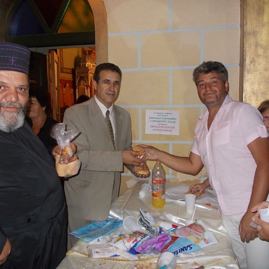 Τόσο στον εσπερινό όσο και ανήμερα μετά την θεία λειτουργεί ο Σύλλογός μας με τους εκπροσώπους του, τον Αντιπρόεδρο κ. Ρηγάτο Χάρη και τον Ταμία κ. Μαρούλη Γρηγόρη, προσέφεραν γλυκά και αναψυκτικά σε όλους.