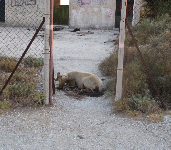 Εκτός της σχεδόν ολοκληρωματικής καταστροφής των αποδυτηρίων και της περίφραξης υπάρχουν και δύο ψόφια ζώα τα οποία είναι εστία μόλυνσης και επικίνδυνα για την υγεία όσων τολμήσουν να πάνε στο γήπεδο.