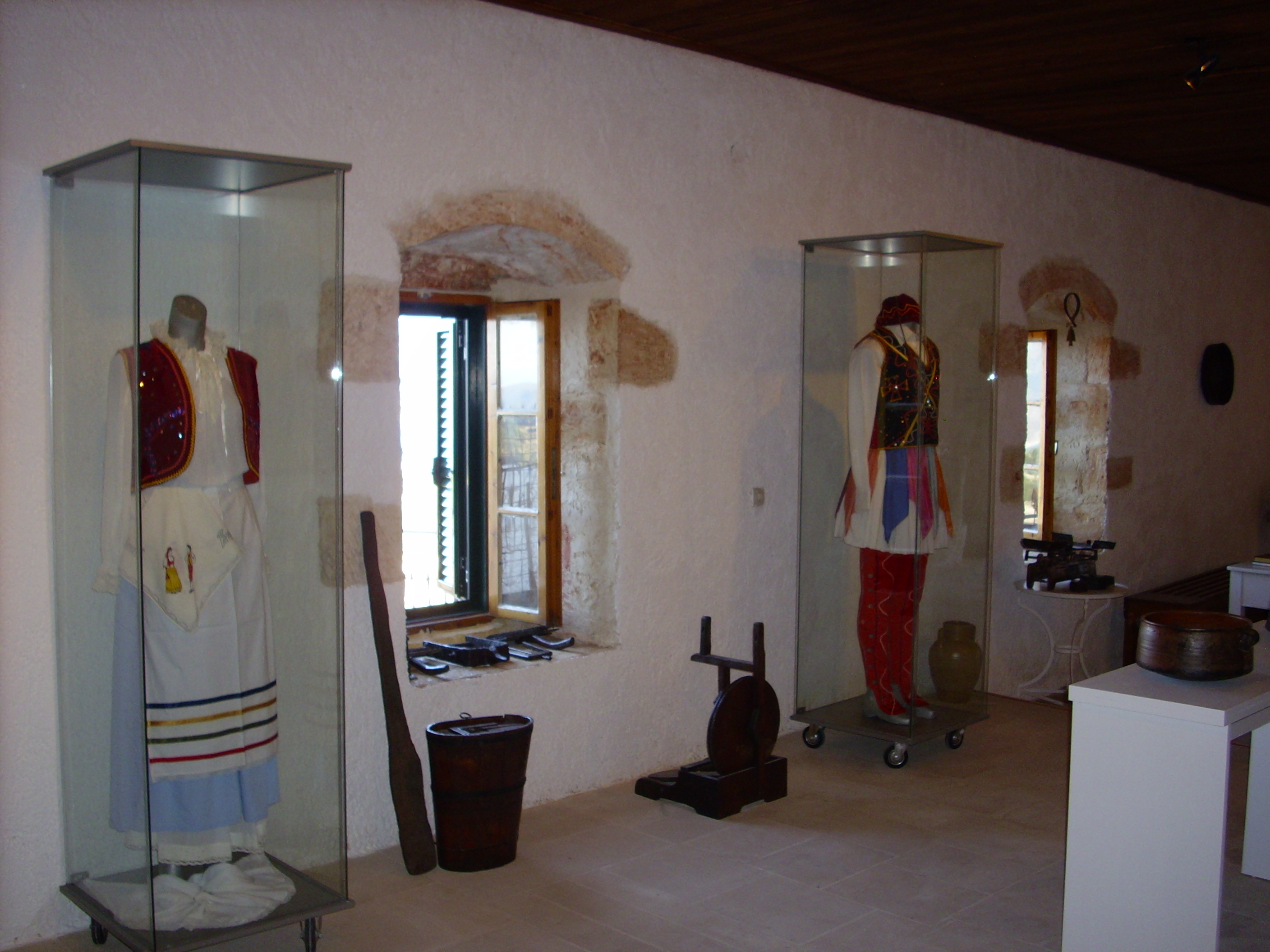 Στολίδι του Μουσείου είναι οι δύο βιτρίνες που φτιάξαμε και τοποθετήσαμε μέσα τις ιστορικές στολές του χορευτικού μας, που είχαν χαριστεί στην κοινότητα από το πρώην πρόεδρο του χορευτικού ομίλου  κ. Φανό Ευάγγελο και μέχρι σήμερα τις φύλαγε η κ. Μαρία Διονυσάτου του Άγγελου πρόεδρος του νέου χορευτικού συγκροτήματος του χωριού.