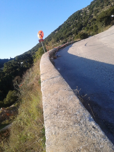 Στο σημείο αυτό είχε πάθει καθίζηση το έδαφος προς τον βράχο και είχαν μπει κάποιες υποτυπώδες κορδέλες για να προειδοποιούν τους περαστικούς. Το οχήματα πήγαιναν πήγαιναν για ασφάλεια λίγο ποιο δεξιά από το παλιό νταμάρι που είχε μπαζωθεί. .