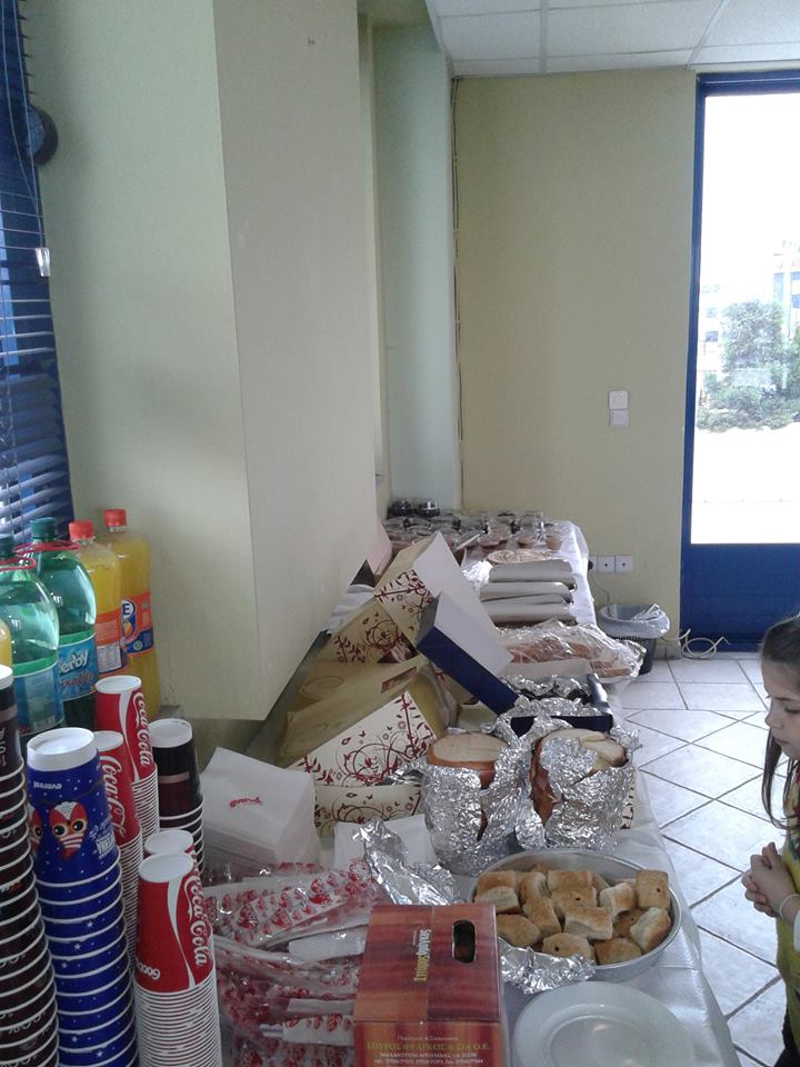 Και αφού ολοκληρώσαμε όλα αυτά ήλθε η ώρα του μπουφέ.Τα τραπέζια ήταν γεμάτα απο μεζέδες και γλυκά όλα προσφορά από τα μέλη του Δ.Σ, την Κούτση Μέμη η οποία πρόσφερε και την πίτα που κόψαμε, και τον Στέλιο Μαρούλη Το κρασί ήταν προσφορά από την κάβα των αδελφών Αντωνάτου Βαγγέλη και Ανδρέα.