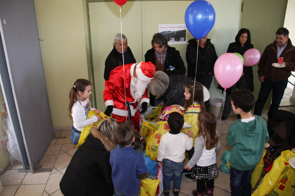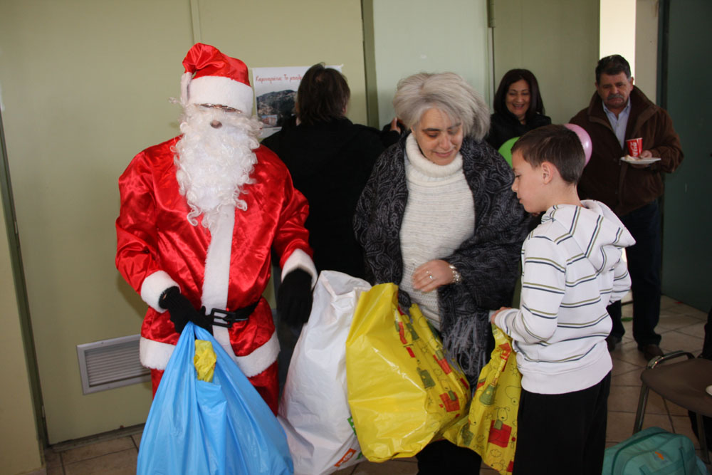Ωραία στιγμή της εκδήλωσης όταν παρουσιάστηκε ο Άγιος Βασίλειος ο οποίος ήρθε ειδικά από την μακρινή Λαπωνία γεμάτος δώρα που με μεγάλη χαρά μοίρασε στους μικρούς μας φίλους.