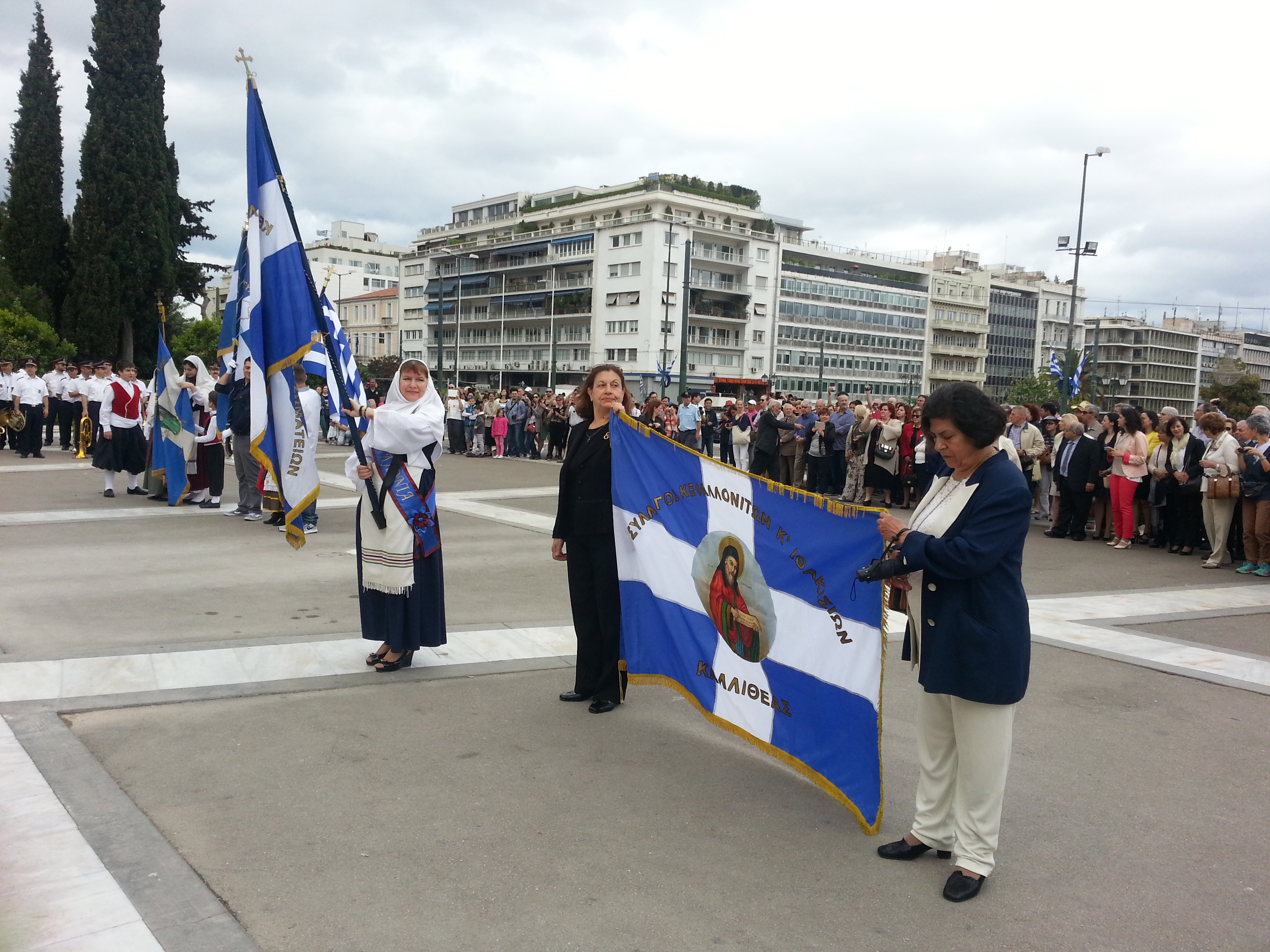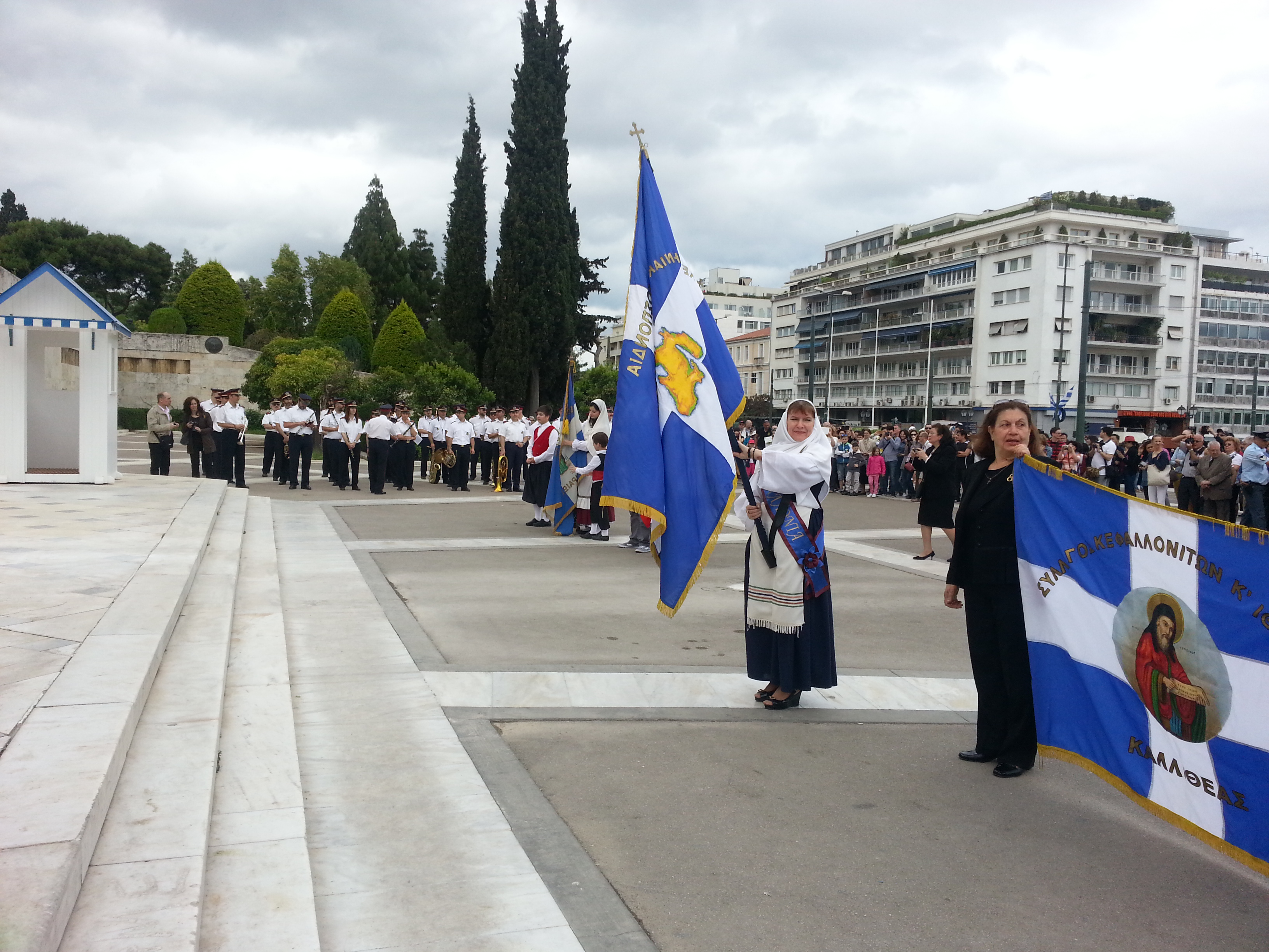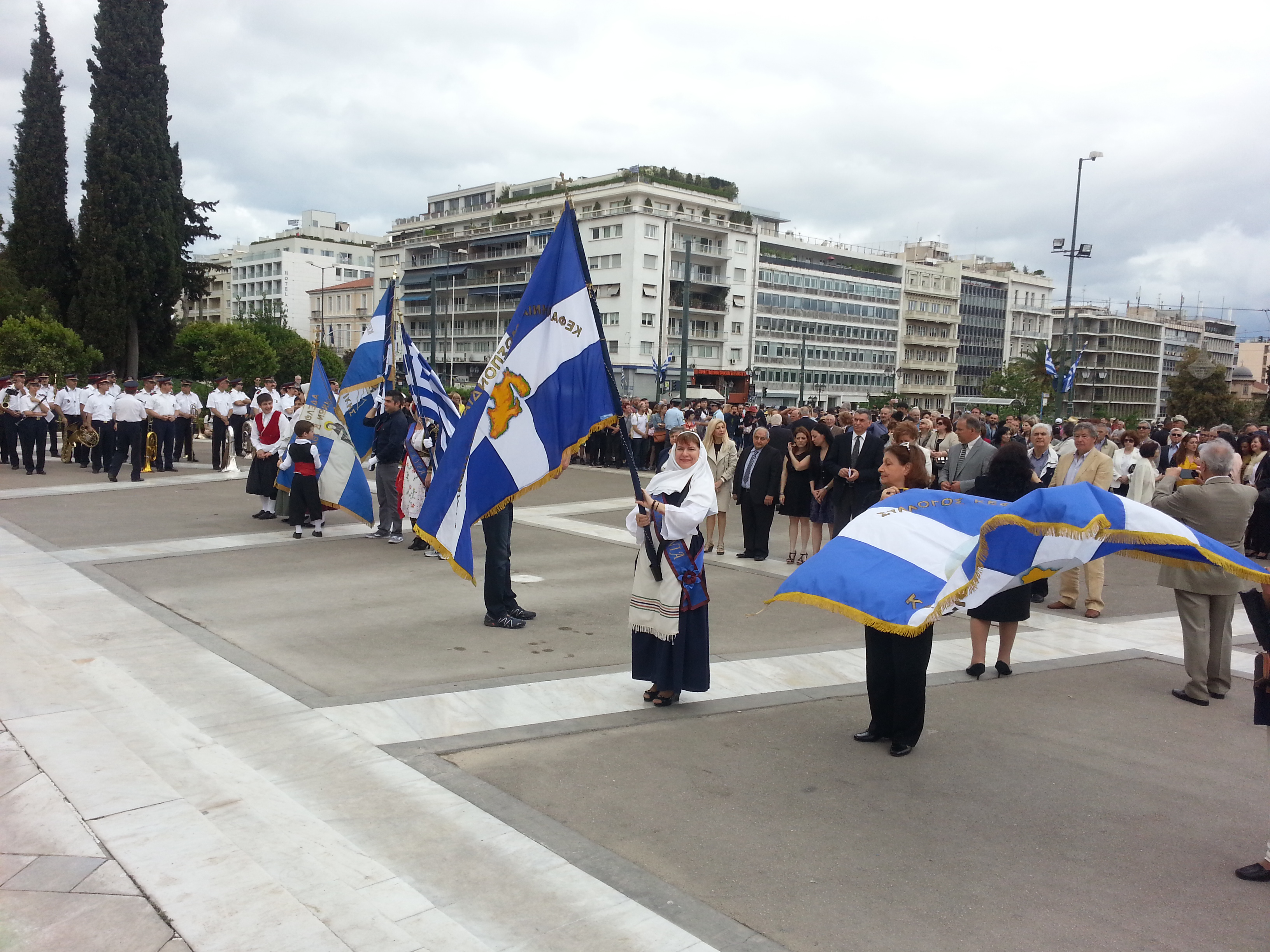 παραδοσιακές φορεσιές και με την συνοδεία της φιλαρμονικής του δήμου της Αθήνας πήγαν στον Άγνωστο Στρατιώτη όπου έγινε κατάθεση στεφάνων.