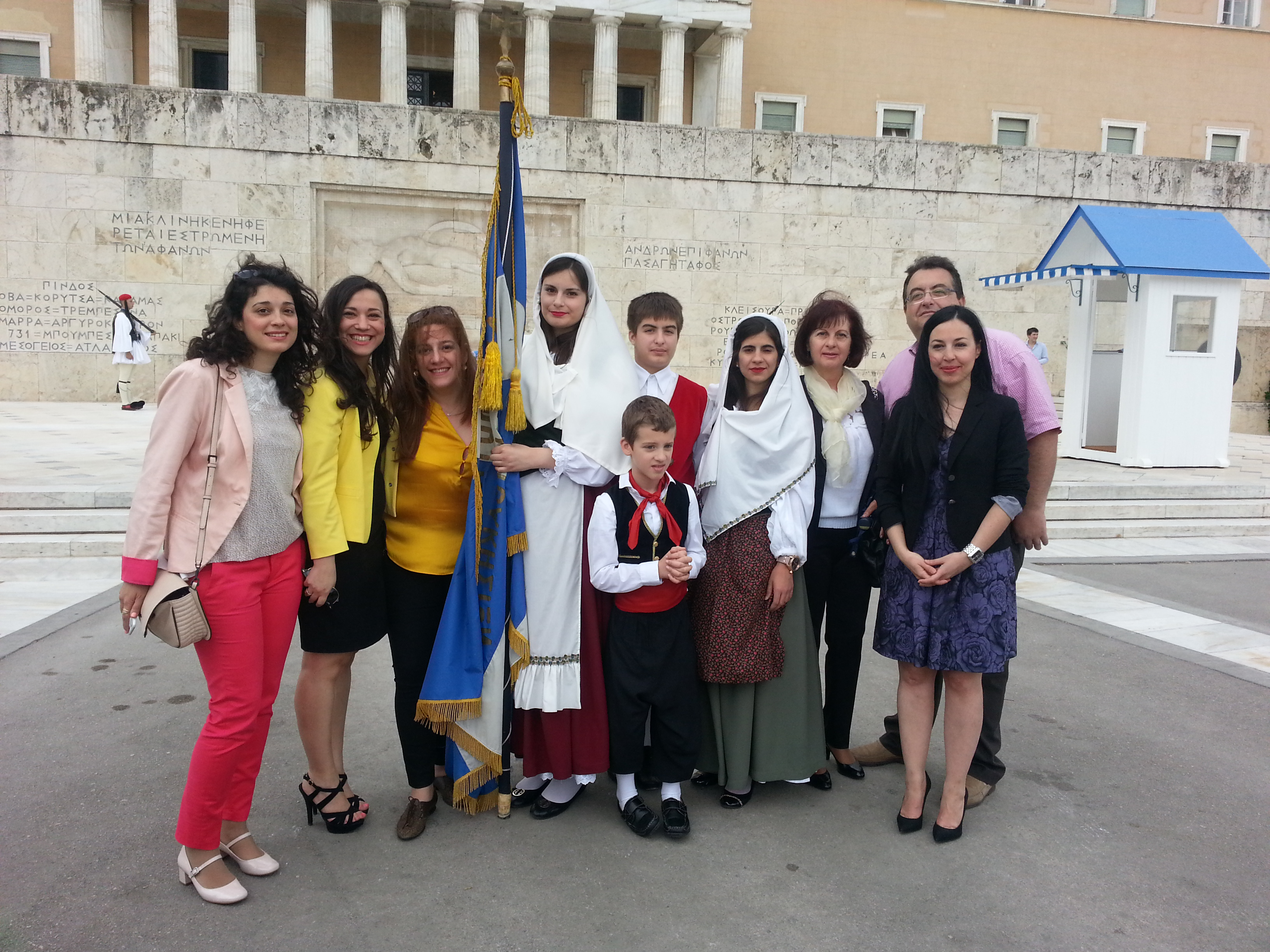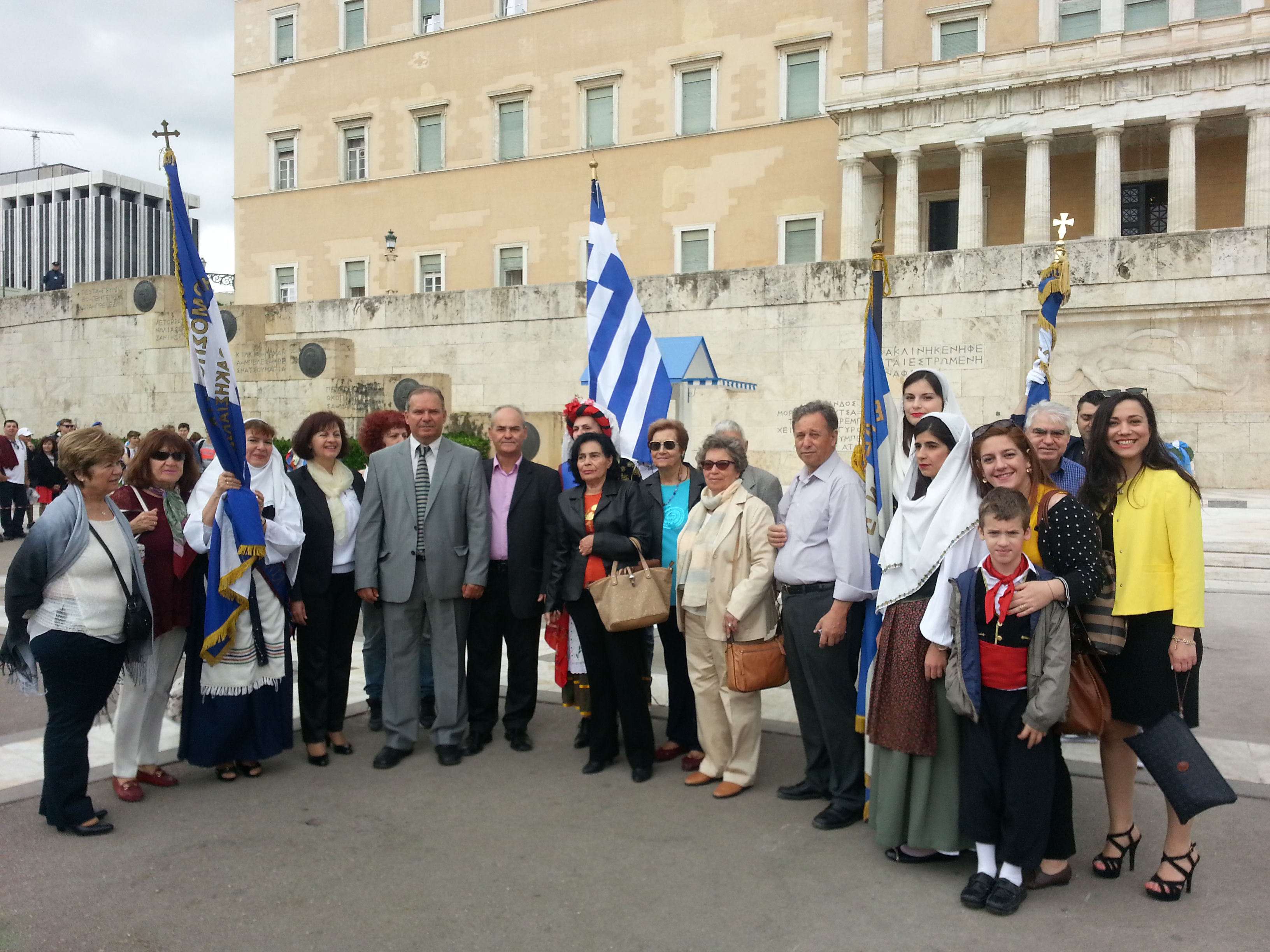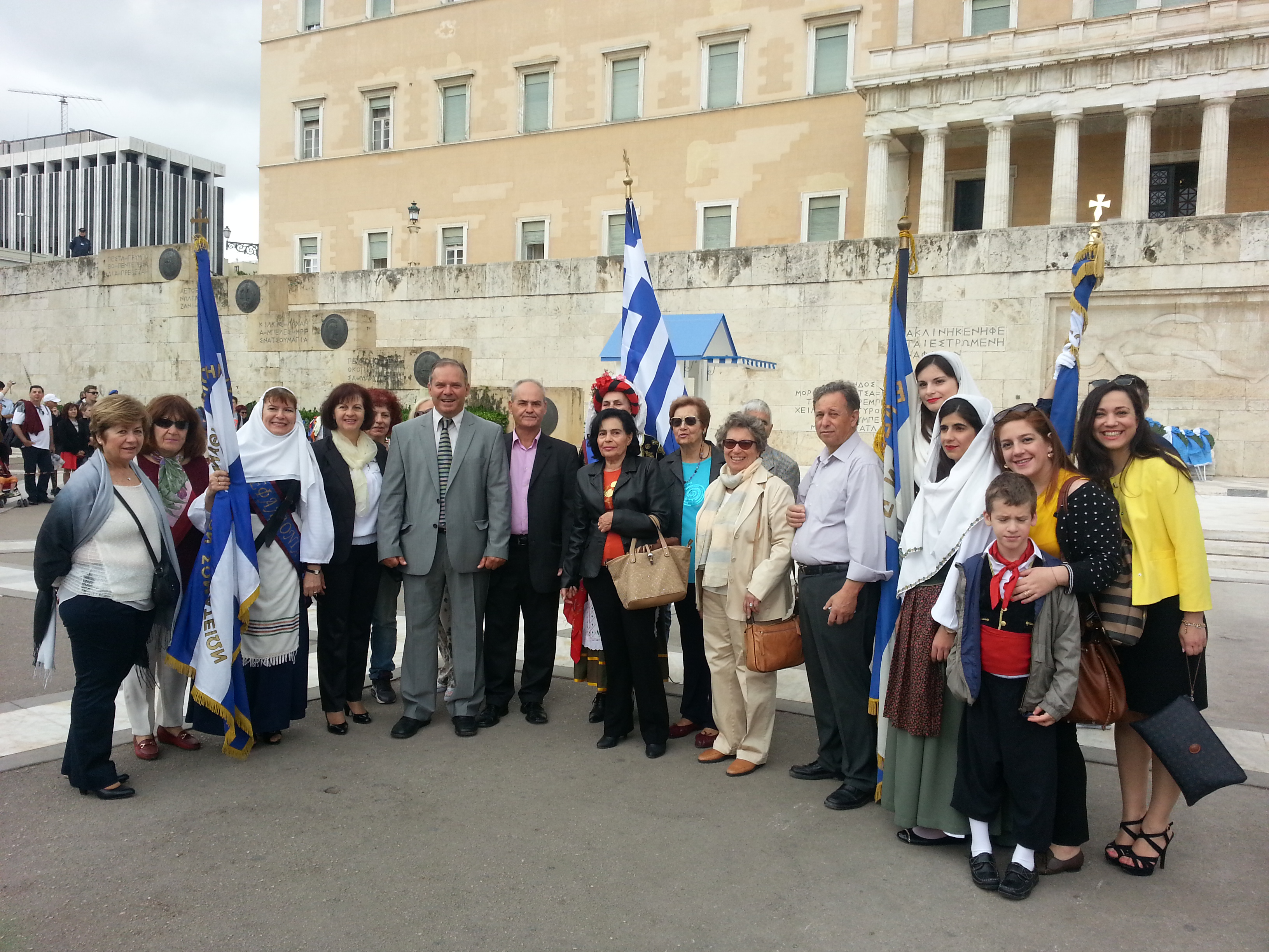 παραδοσιακές φορεσιές και με την συνοδεία της φιλαρμονικής του δήμου της Αθήνας πήγαν στον Άγνωστο Στρατιώτη όπου έγινε κατάθεση στεφάνων.