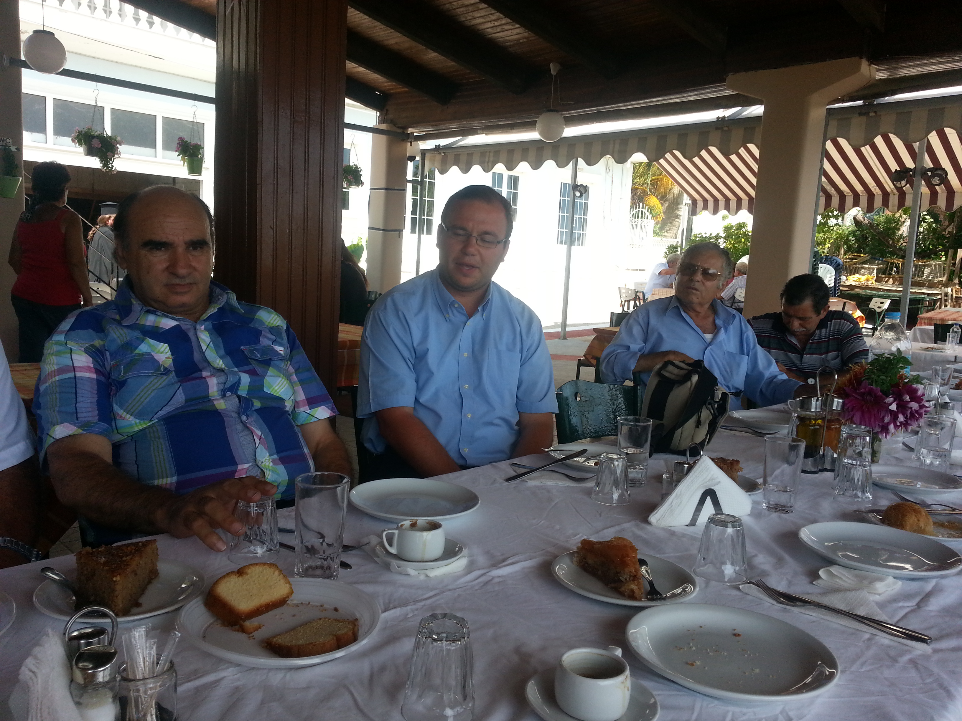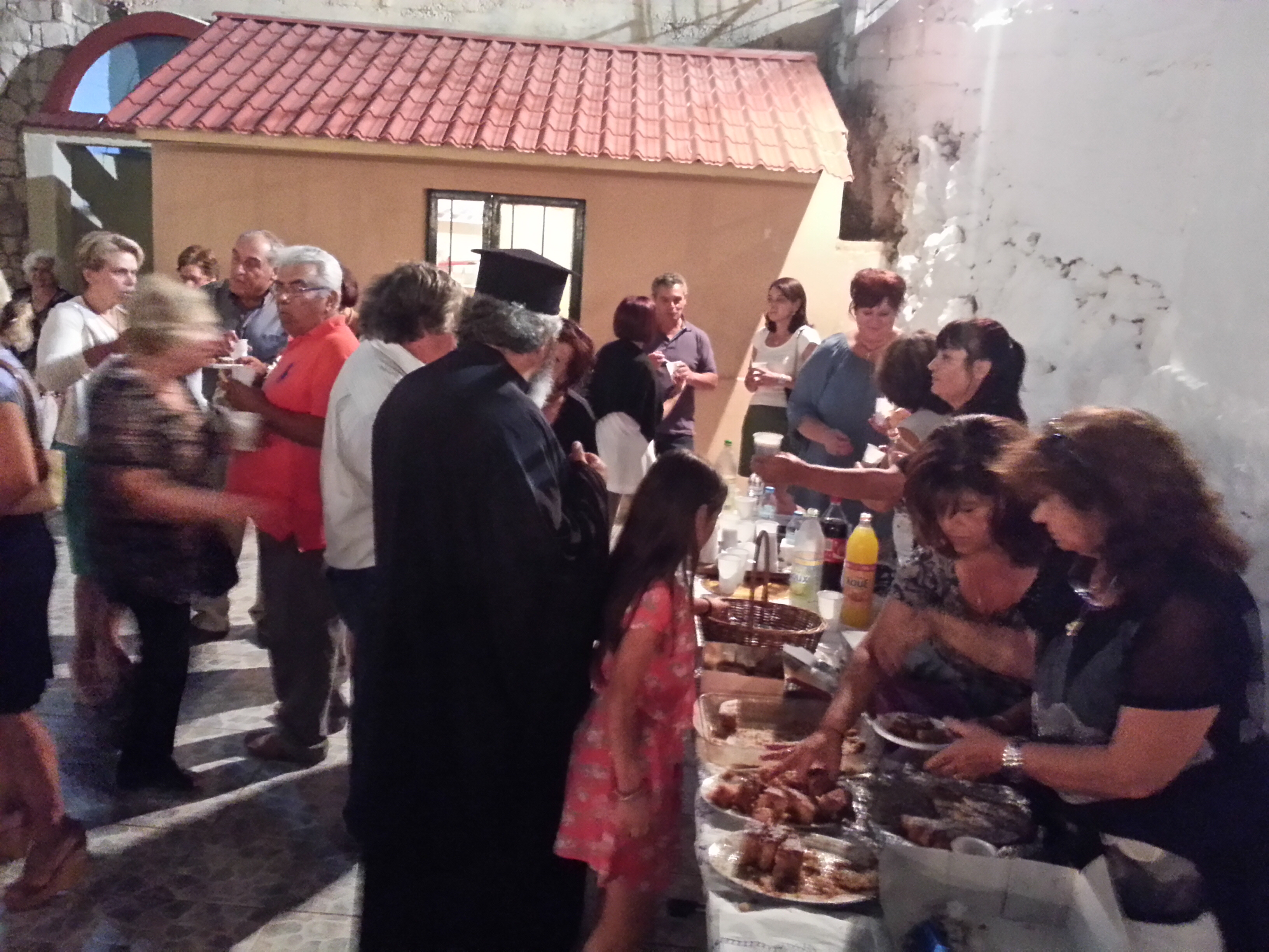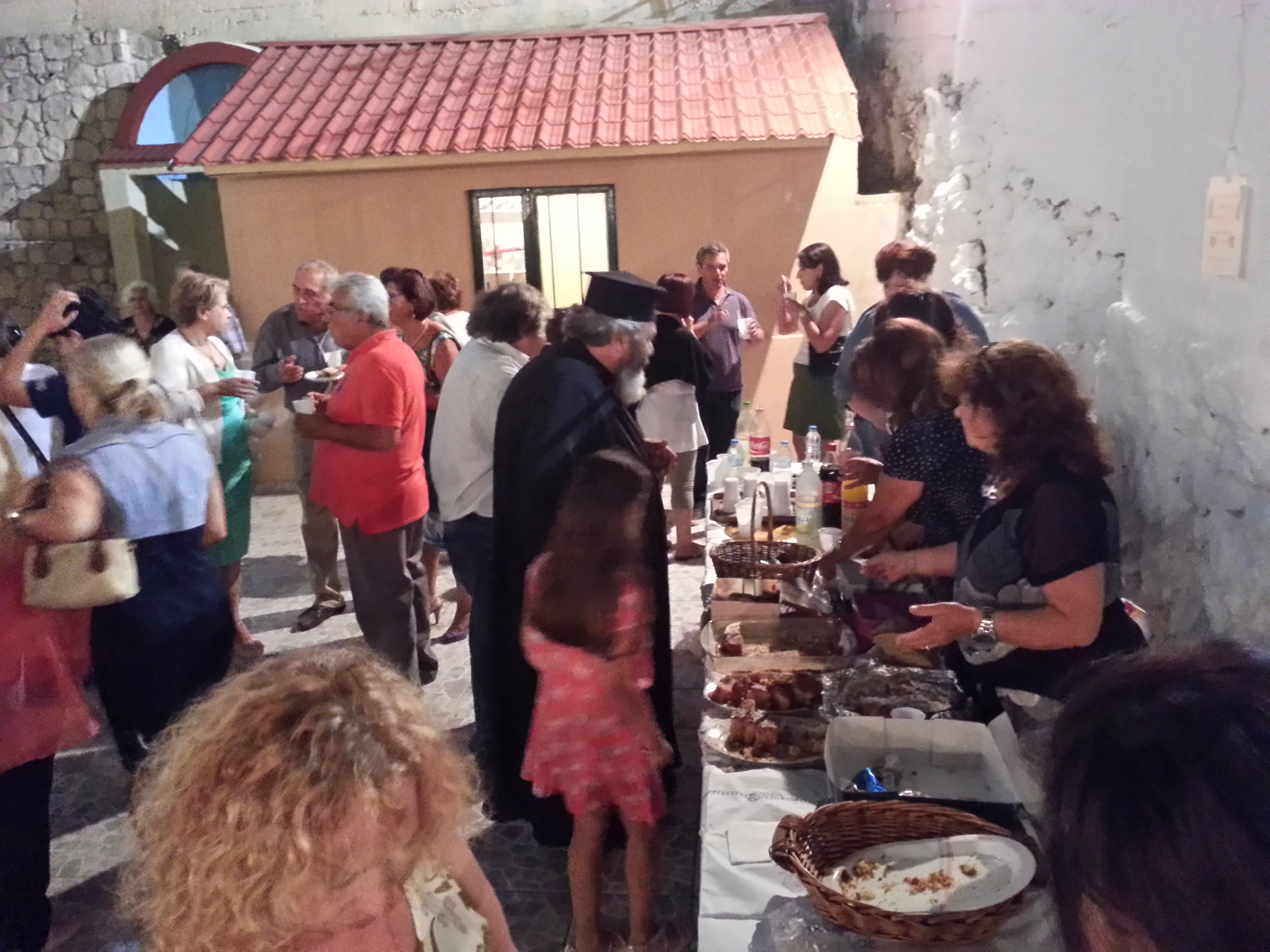 Ακολούθησε μπουφές όπως και στον εσπερινό προσφορά των ιδίων χορηγών και στην συνέχεια το εκκλησιαστικό συμβούλιο προσέφερε φαγητό στην ταβέρνα του κ Αντωνάτου Ανδρέα, στο οποίο παρέστησαν ο μητροπολίτης μας οι ιερείς και ψαλτάδες και οι επίσημοι..