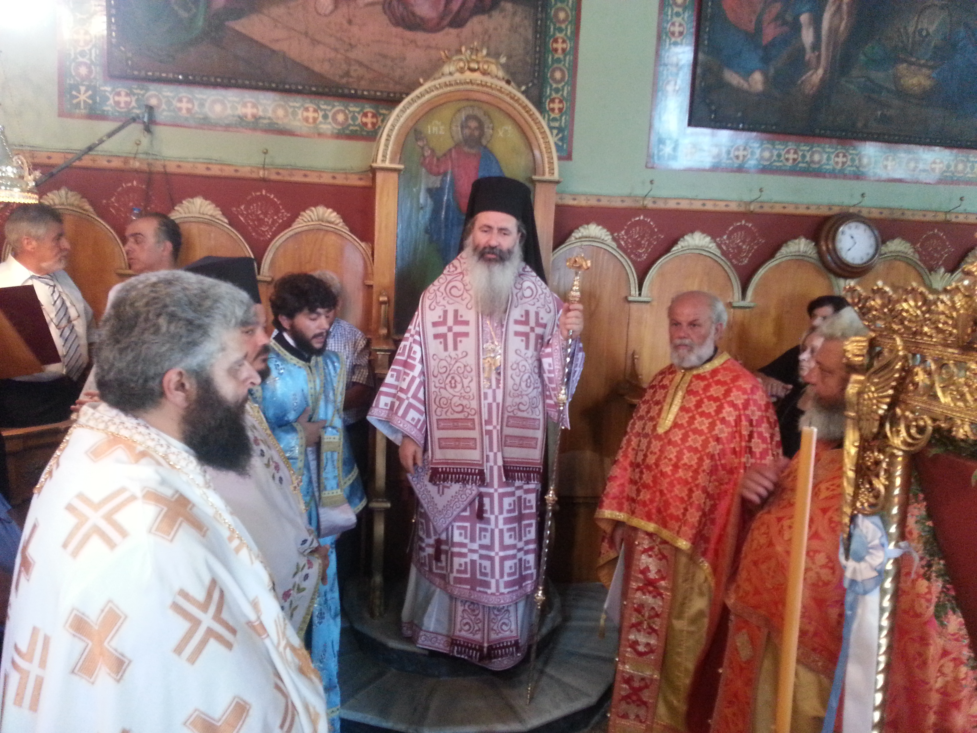 Ανήμερα η εορτή ξεκίνησε με την θεία λειτουργία στην οποία χοροστάτησε ο Μητροπολίτης μας κ.κ. Δημήτριος με άλλους επτά ιερείς.. Στη θεία λειτουργία παρέστησαν