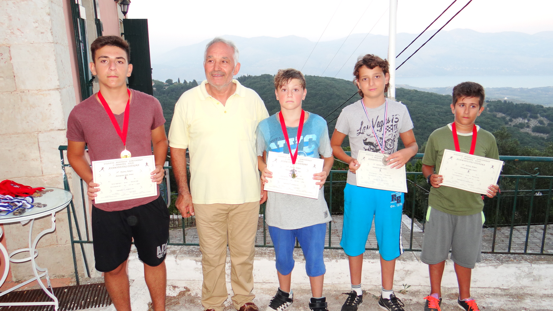Αντωνάτος Ευάγγελος, Κώστας, Γεράσιμος, και Συριάτος Μιχάλης εγγόνια του Παλιού αθλητή και Βαλκανιονίκη Αντωνάτου Γεράσιμου του Παναγή. Τερμάτισαν όλοι μαζί- Ξαδελφική αλληλεγγύη