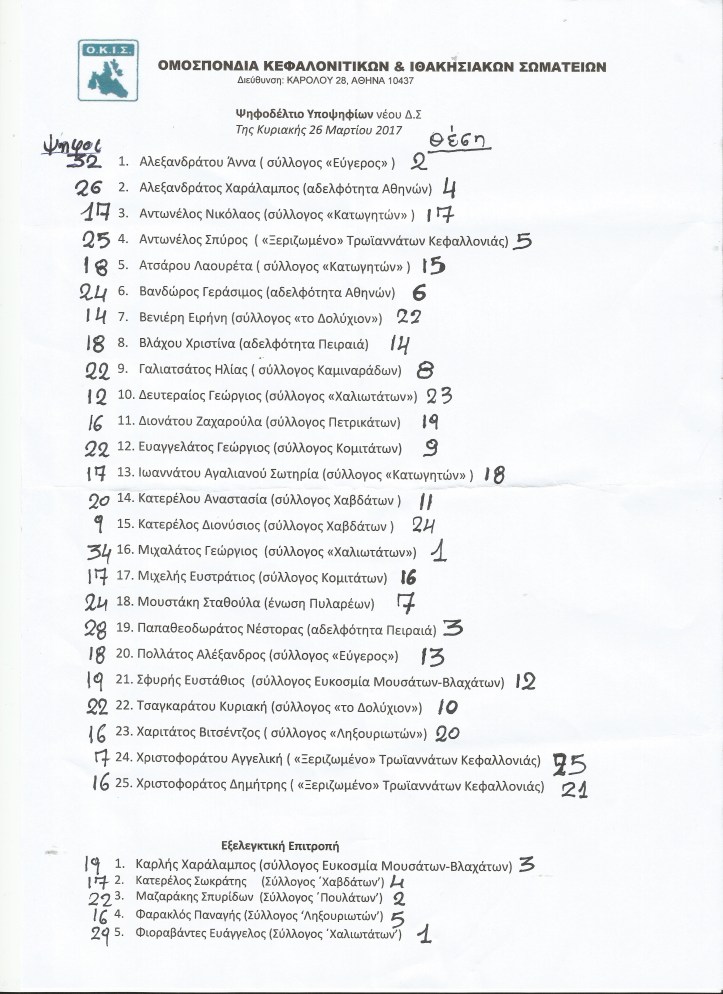 Με τη συμμετοχή του συνόλου σχεδόν των αντιπροσώπων στη Ομοσπονδία Συλλόγων Κεφαλονιάς και Ιθάκης διεξήχθησαν σήμερα Κυριακή 26 Μαρτίου από 11,00 έως 14,00, στα γραφεία της Καρόλου 28 στην Αθήνα, οι εκλογές για την ανάδειξή των μελών του Διοικητικού Συμβουλίου για την επόμενη διετία.