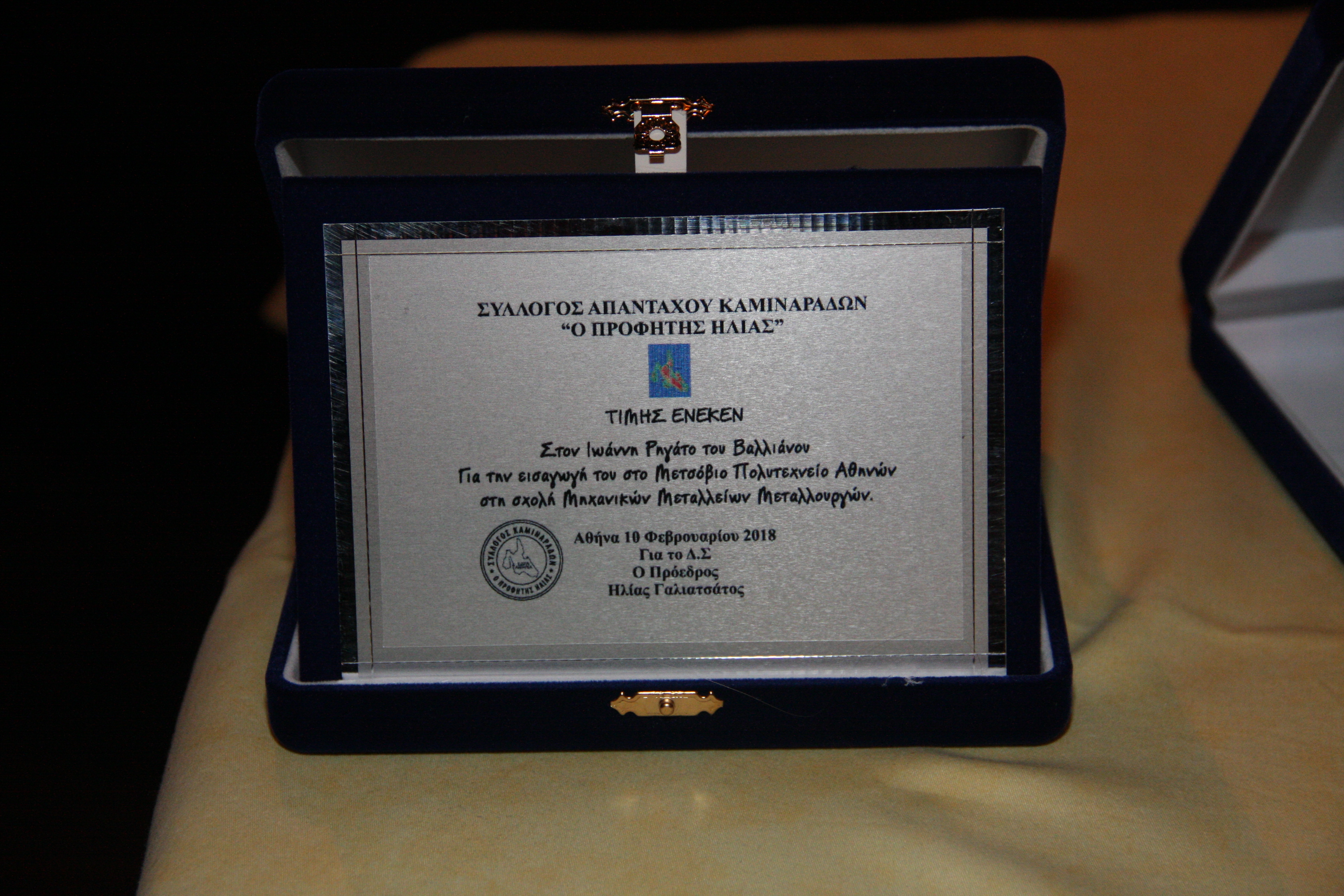 Όπως κάθε χρόνο στη συνεστίαση μας έγινε απονομή πλακετών στους νέους και τις νέες που κατάγονται από τα Καμιναράτα και επέτυχαν στα Α.Ε.Ι και Τ.Ε.Ι της χώρας..