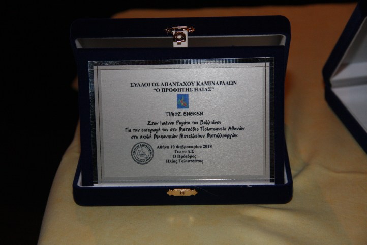 -Ο Ιωάννης Ρηγάτος του Βαλλιάνου για την εισαγωγή του στο Μετσόβιο Πολυτεχνείο Αθηνών στη σχολή Μηχανικών Μεταλλείων Μεταλλουργών .