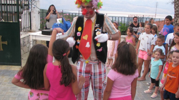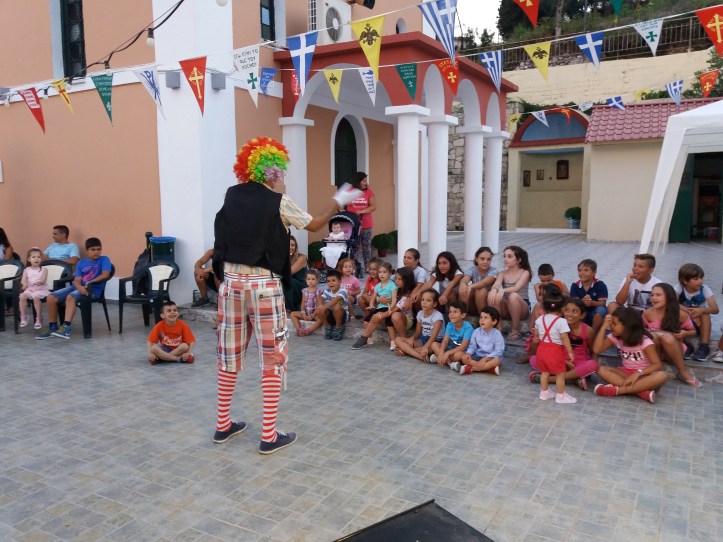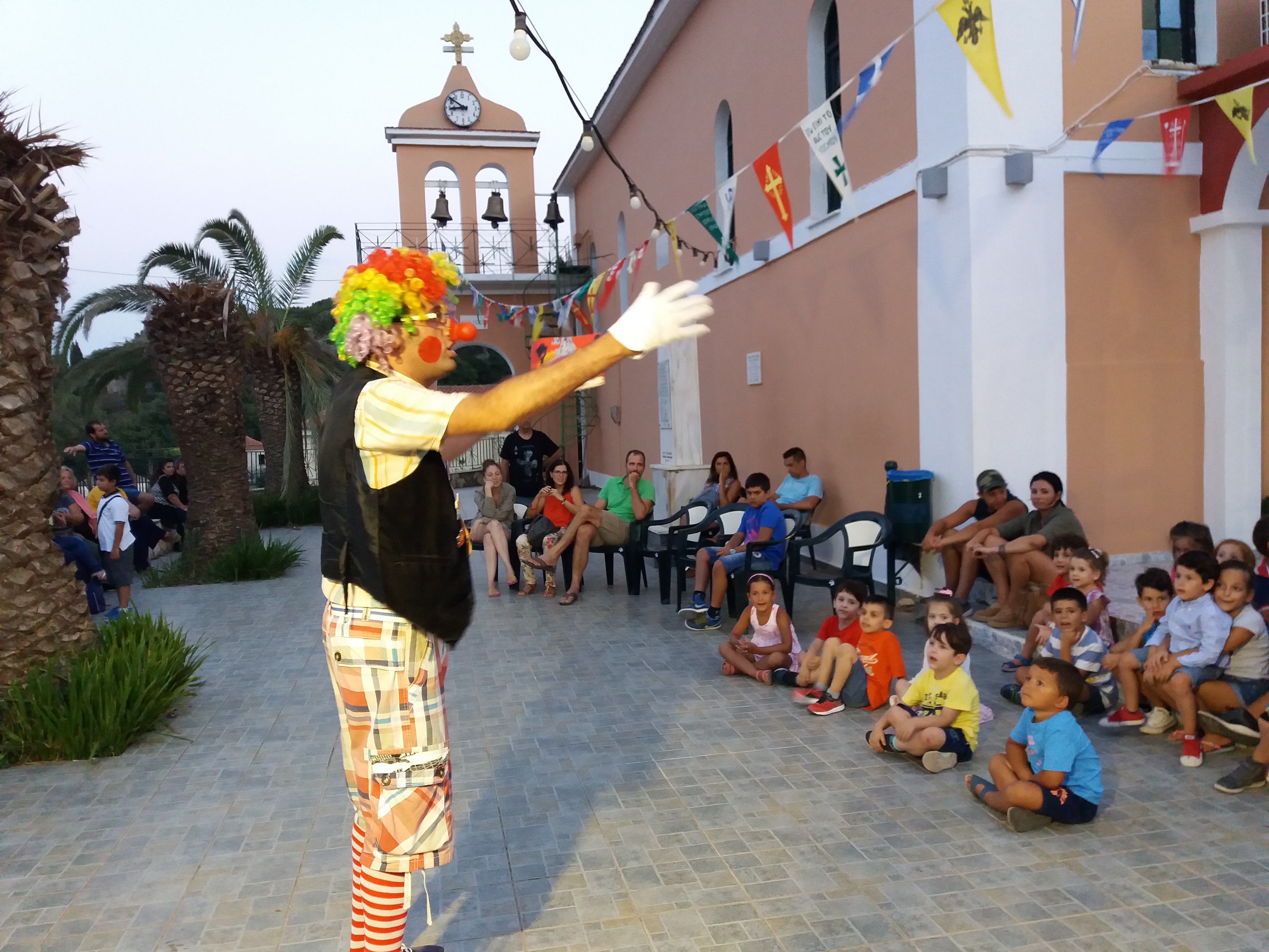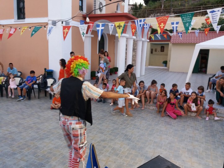 Το προαύλιο της εκκλησία ήταν ο ενδεδειγμένος για τέτοια εκδήλωση και αφού φωταγωγήθηκε και τοποθετήθηκαν ηχητικά πάνω από 100 παιδιά υποδέχτηκαν τον κλόουν Τόλη Πιστόλη και πέρασαν ένα τρίωρο γεμάτο κέφι χορό και παιχνίδια.