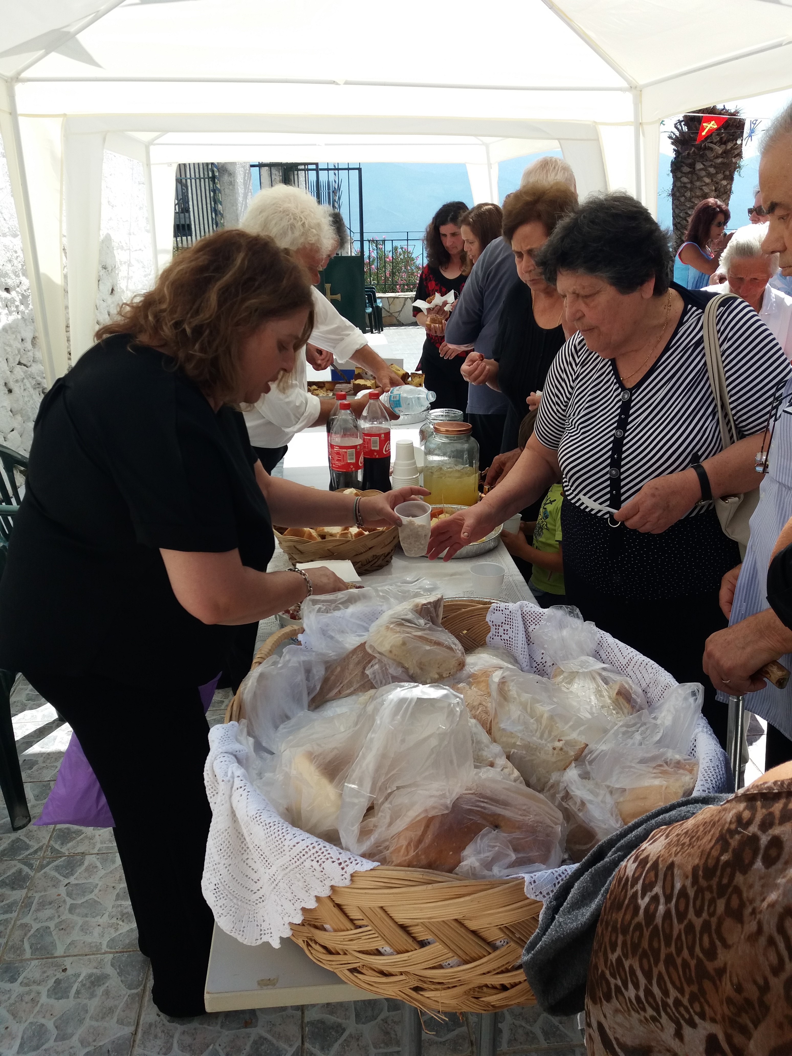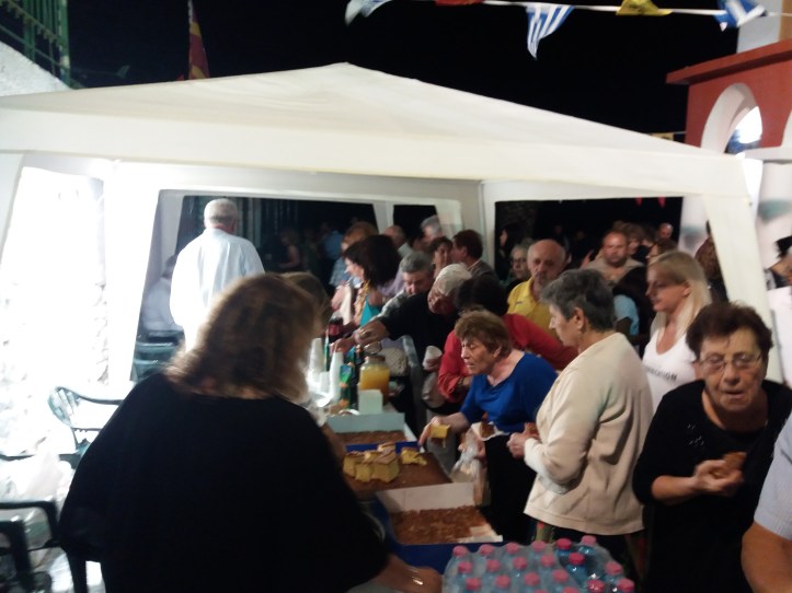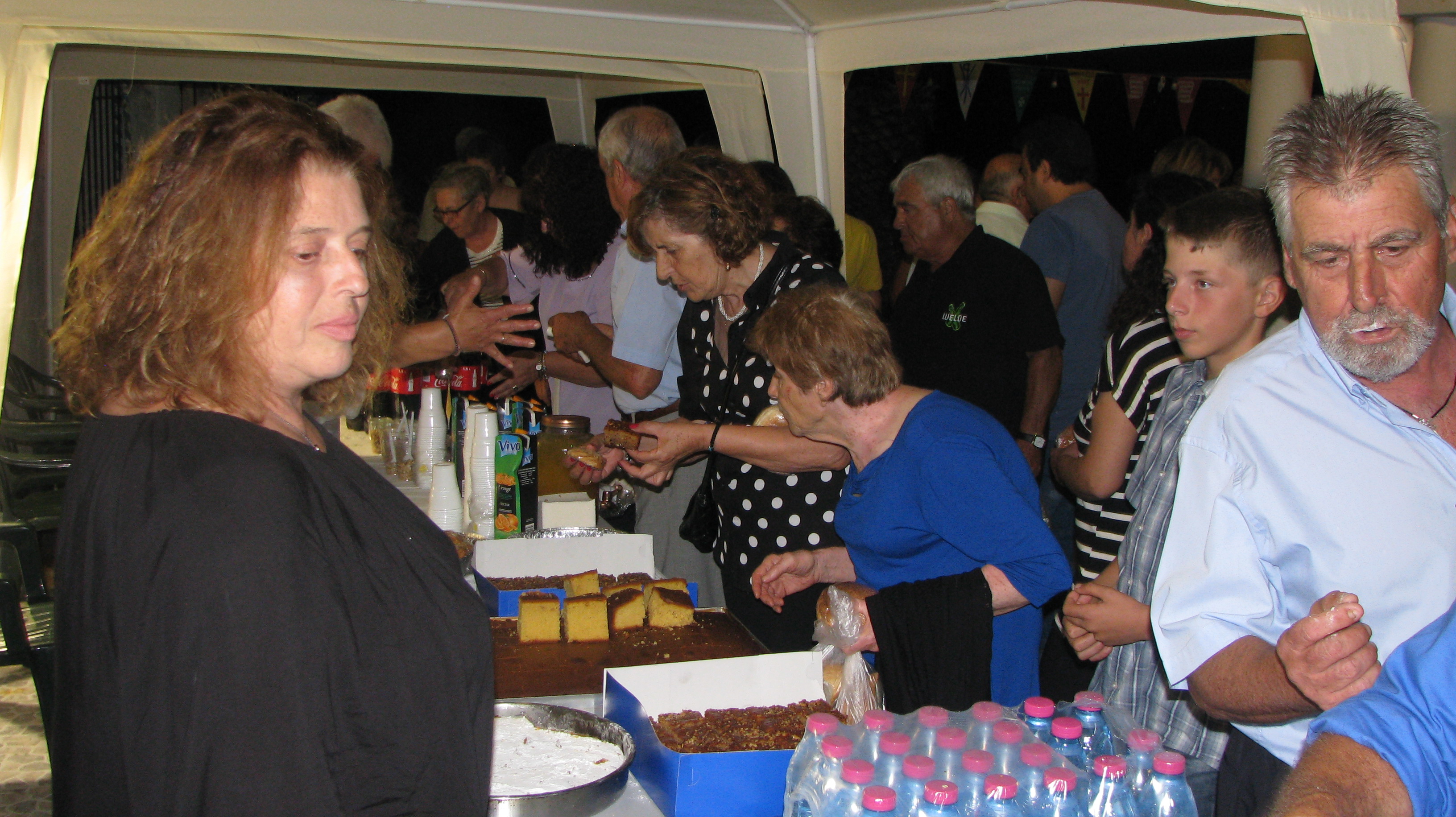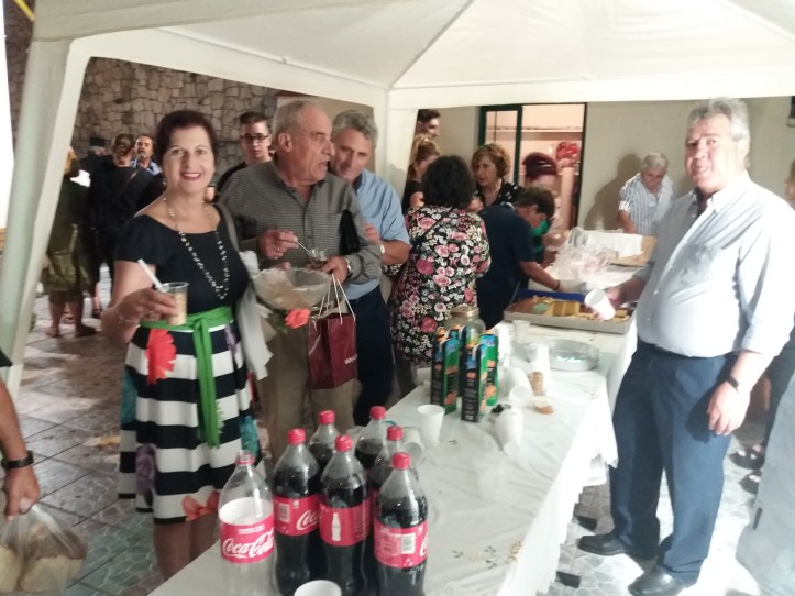 Μετά τον Εσπερινό με κοινή συνεργασία ο σύλλογός μας ο σύλλογος Αετός του χωριού και το εκκλησιαστικό συμβούλιο είχαν φροντίσει και εκτός τις αρτοκλασίες και τις σκουτέλες που είχαν φέρει συγχωριανοί και φίλοι, υπήρχαν άφθονα γλυκά μεζέδες και αναψυκτικά έξω από την εκκλησία μας με τα οποία κεράστηκαν όλοι και αντάλλαξαν ευχές.